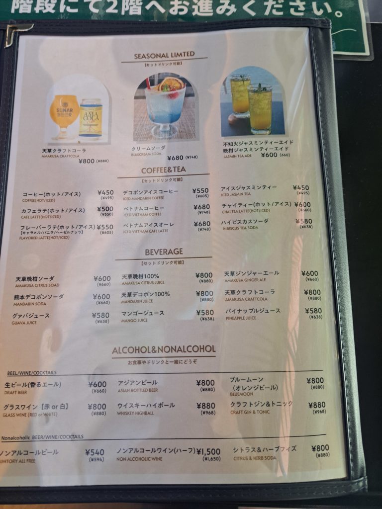 珍しい天草のクラフトコーラやアジアン料理を食べることができます。