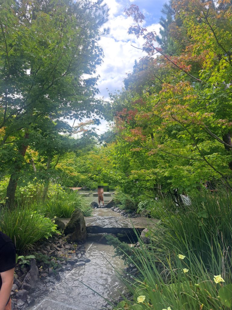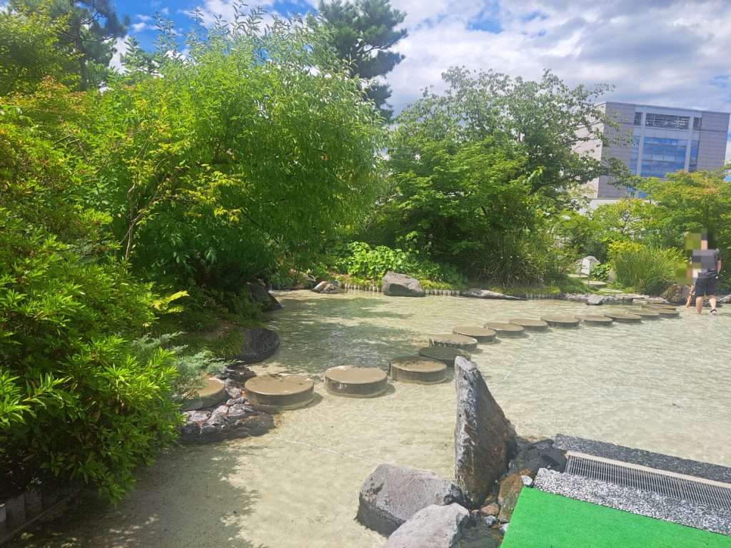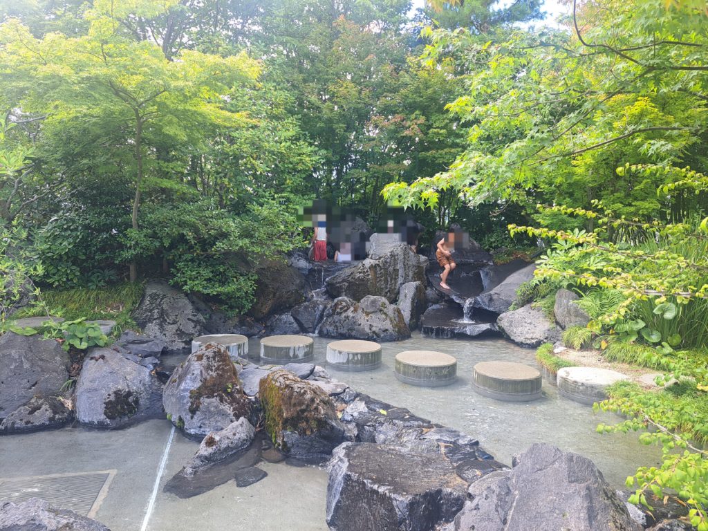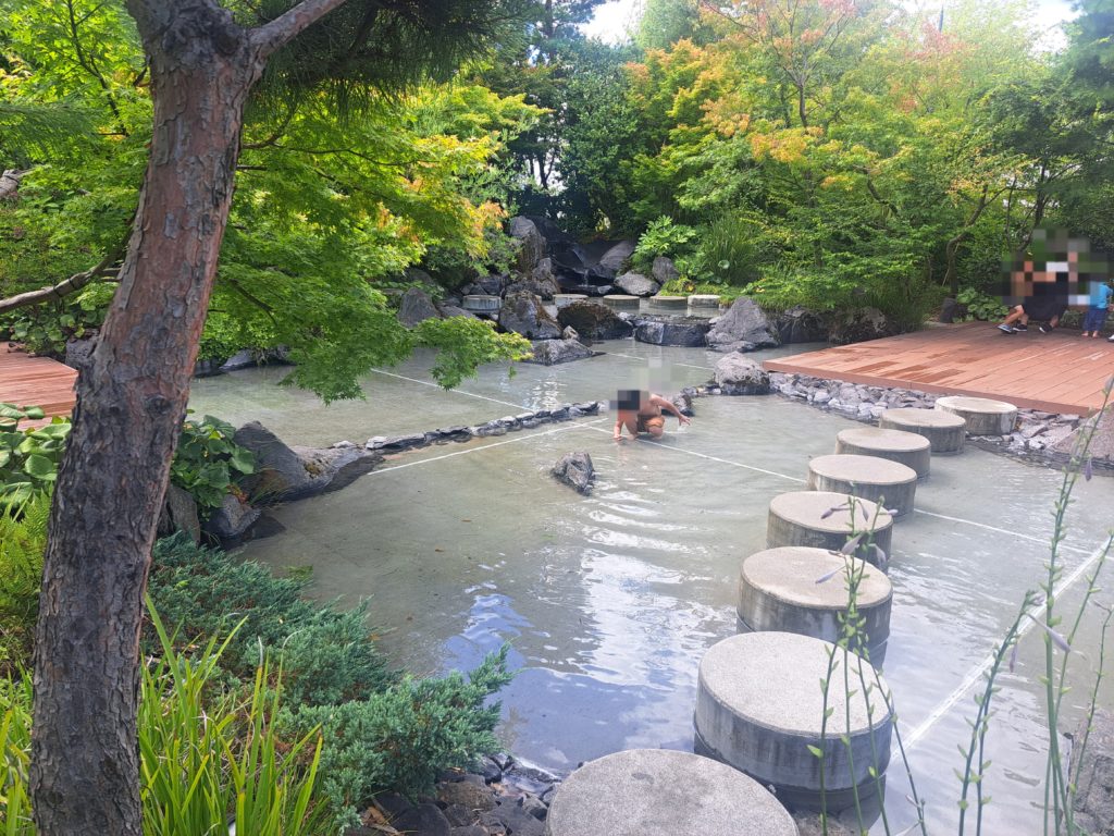 広い水遊び場には飛び石の渡橋や水が出る噴水(?)があります。