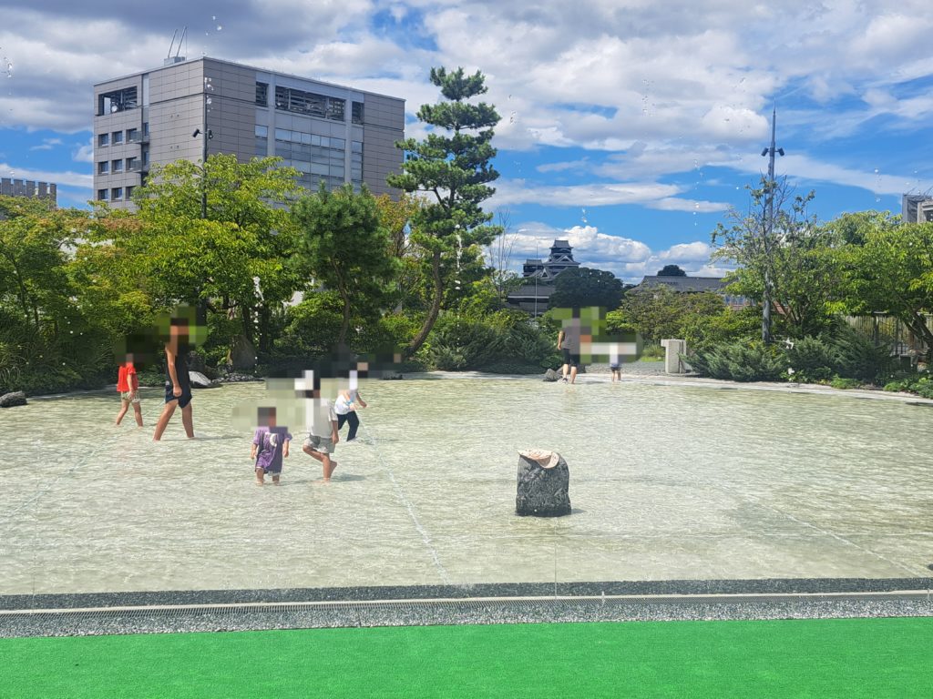 サクラマチクマモトは毎年人気の水遊び場です。