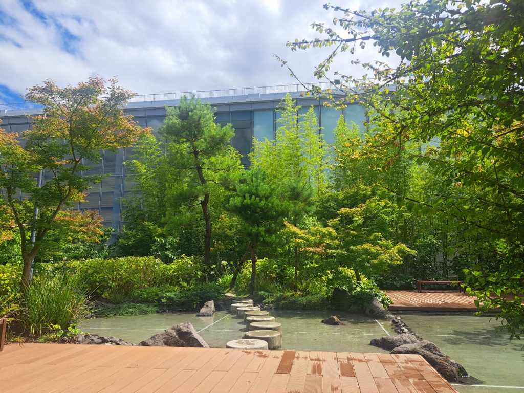 特に1番上にあるサクラマチガーデンはたくさんの木々と水辺、滑り台など子どもたち専用の遊び場もあります。
