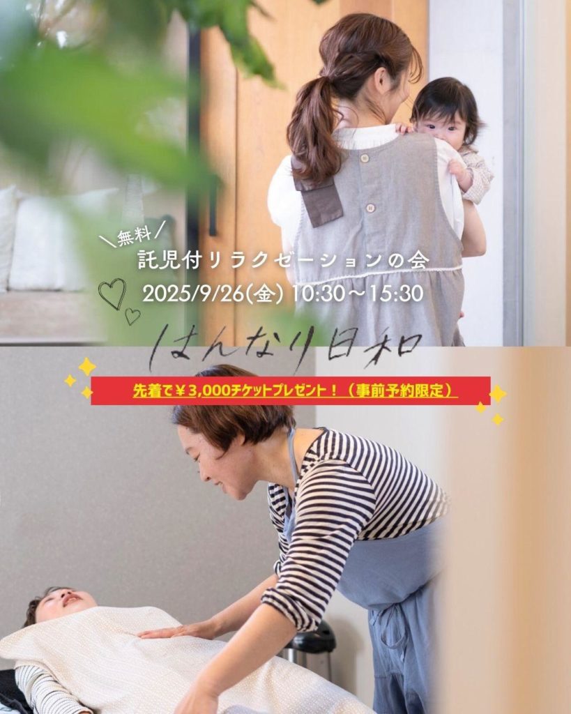 26日(金)無料託児付リラクゼーション💆‍♀️