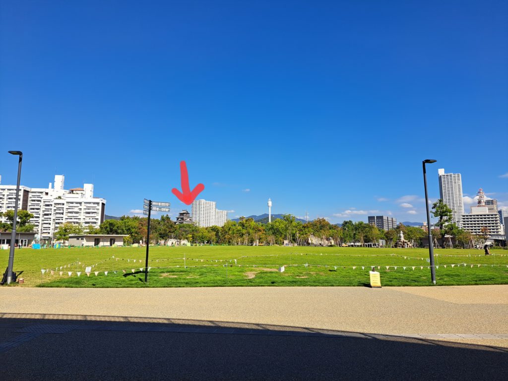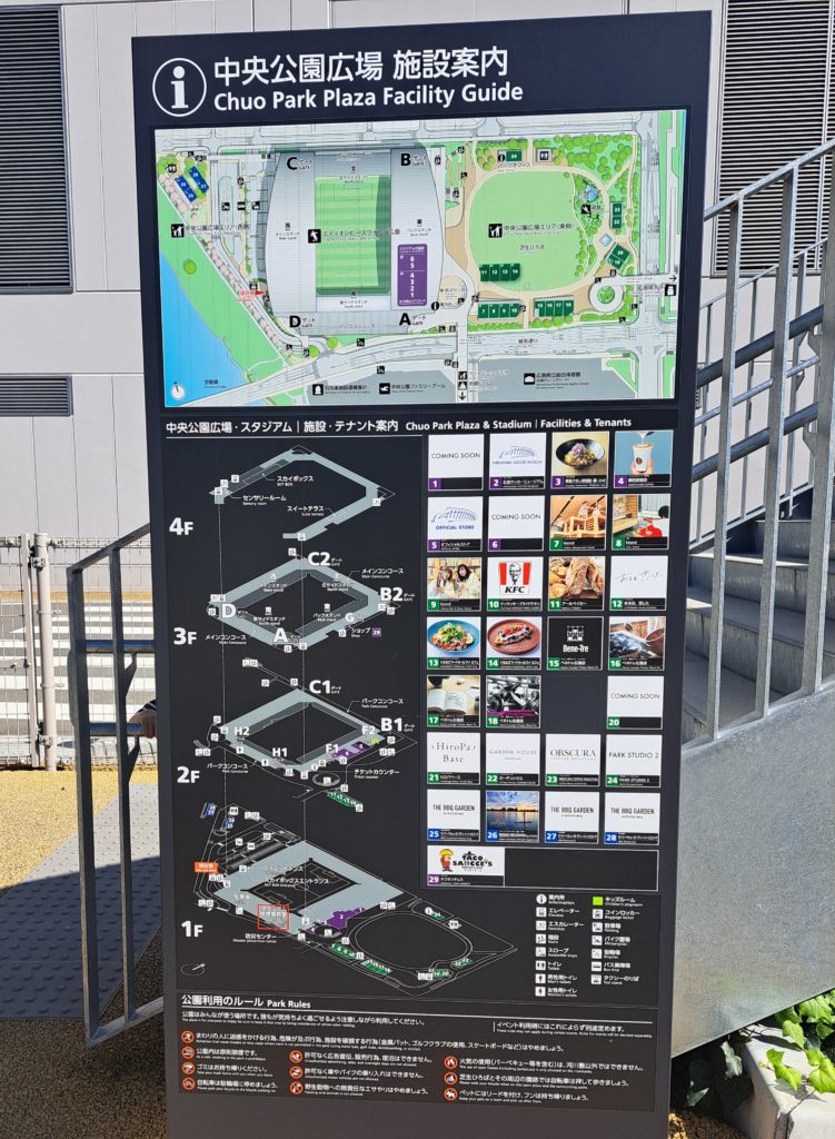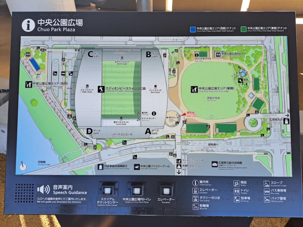 エディオンピースウィング広島は中央公園広場の中にあります。