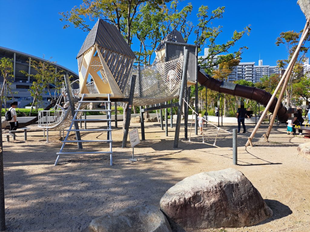ここは広い芝生広場や公園があって、子どもが遊ぶのにはうってつけです!